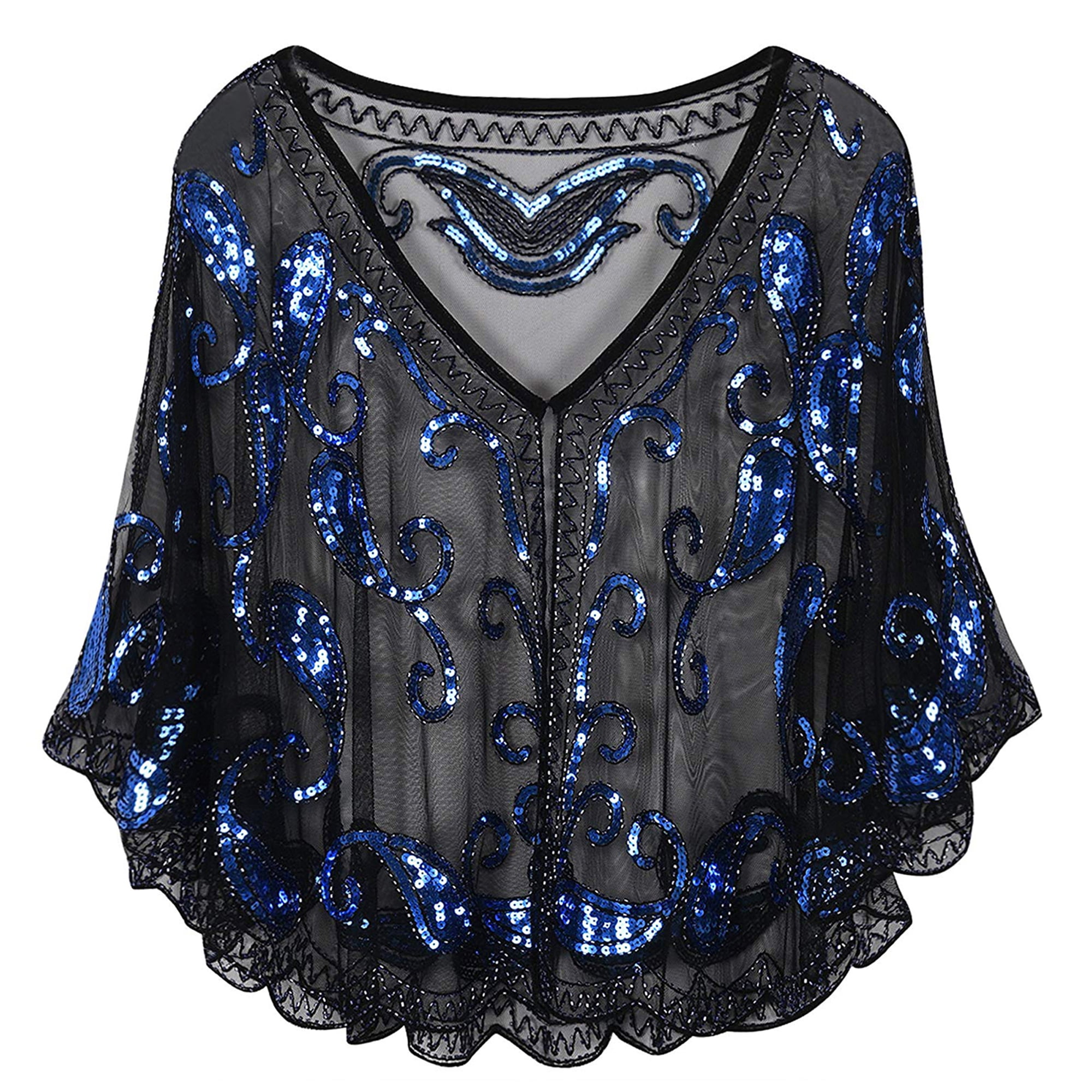 Wassery Women's Shawl Wraps Vintage Sequins Sheer Mesh Evening Dress Cape for Proms Wedding ladies cap shawls