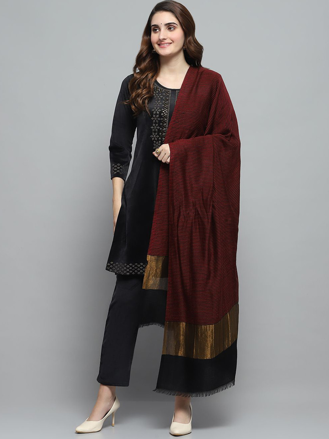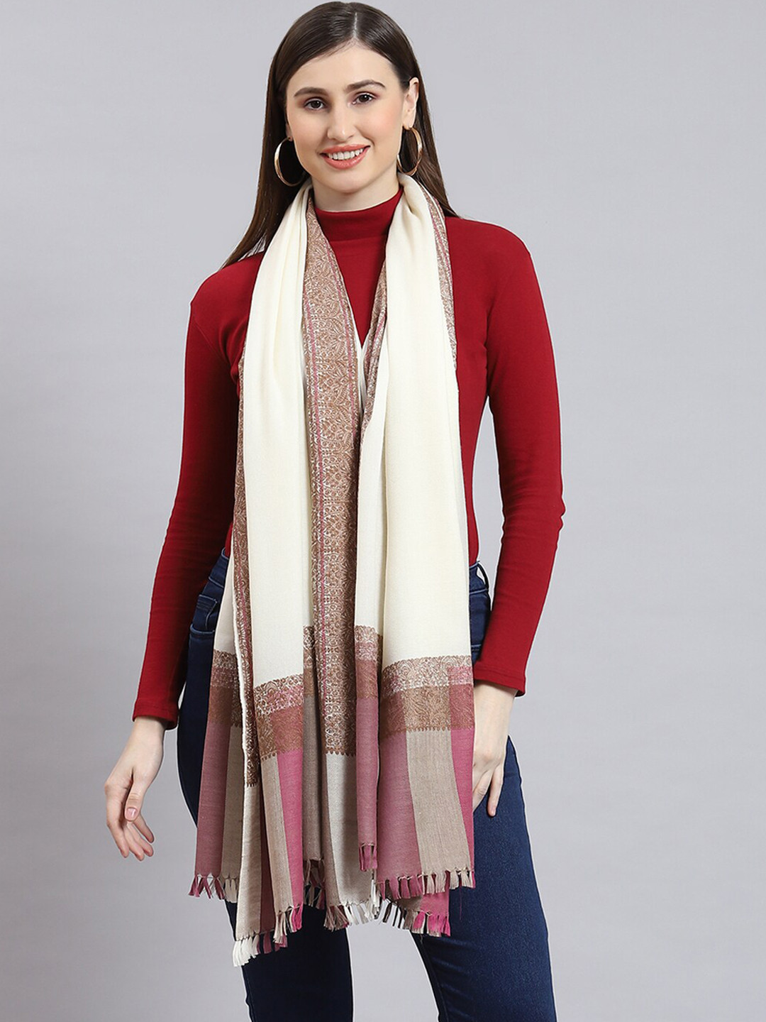 Buy Monte Carlo Striped Fringed Shawl - Shawl for Women 32203403 | Myntra monte carlo shawl ladies