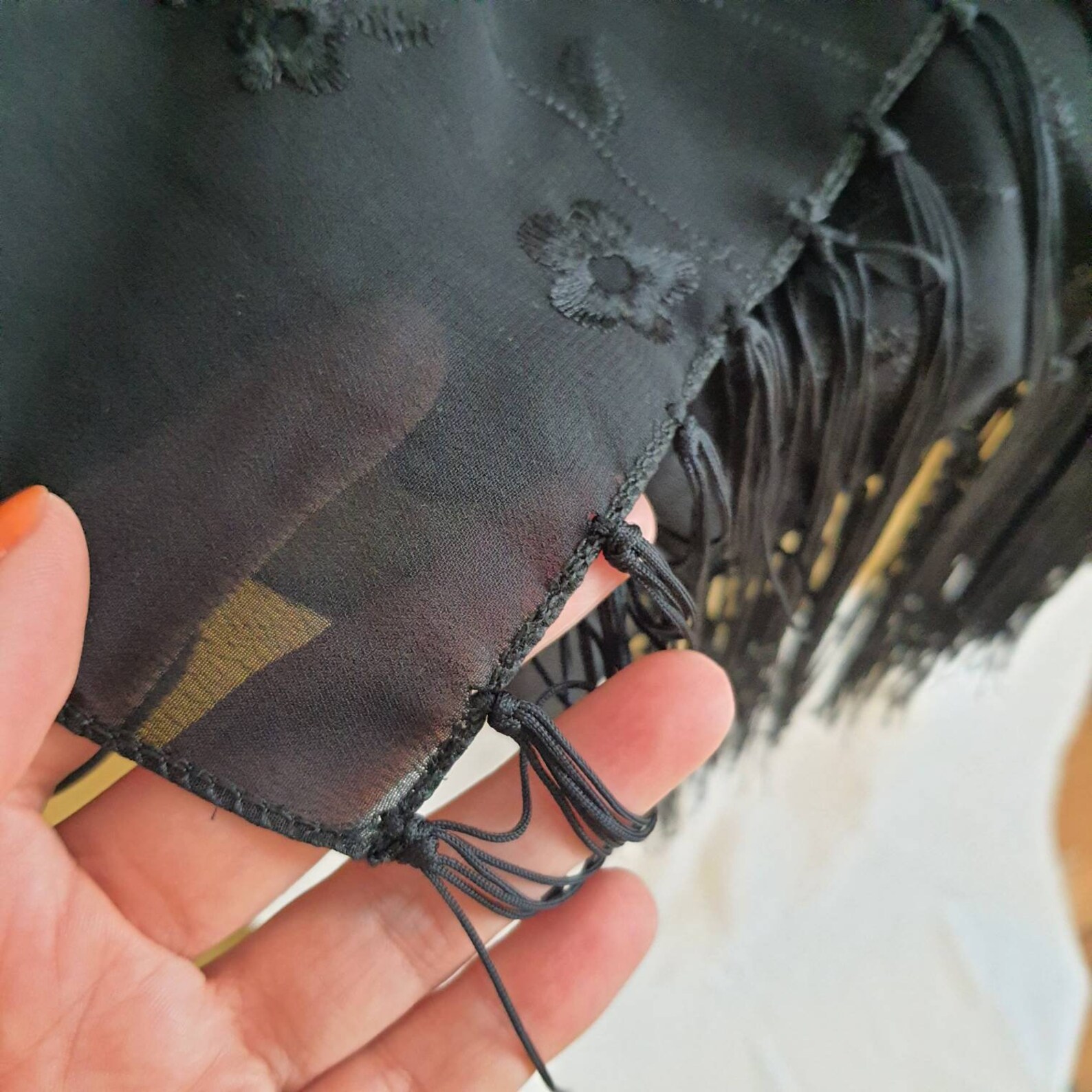 Vintage Black Shawl Embroidered Shawl Crocheted Fringe | Etsy