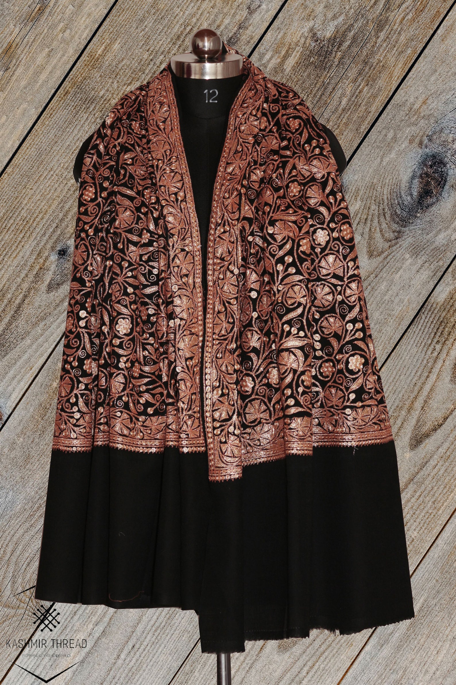 Embroidered Kashmiri Black Woolen Shawl kashmiri woolen shawls online