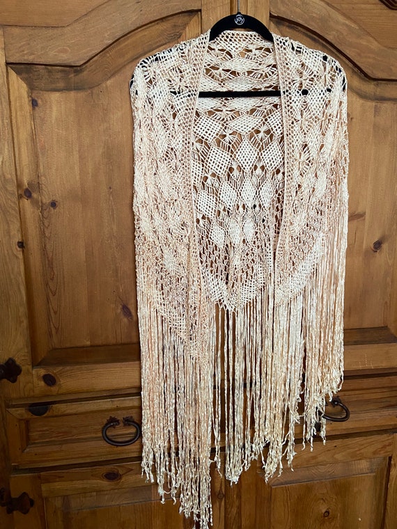 Vintage shawl with long fringe shawl champagne cream ⦠- Gem embroidered shawl with fringe