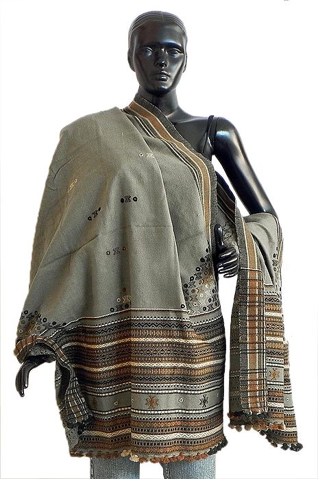 Grey Ladies Kutchi Shawl with Mirrorwork kutchi shawl online