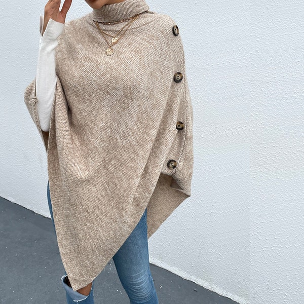 Womens Pullover Sweaters Poncho Oversized Autumn Winter Loose Fitting Poncho Cape Shawl with shawl poncho sweater