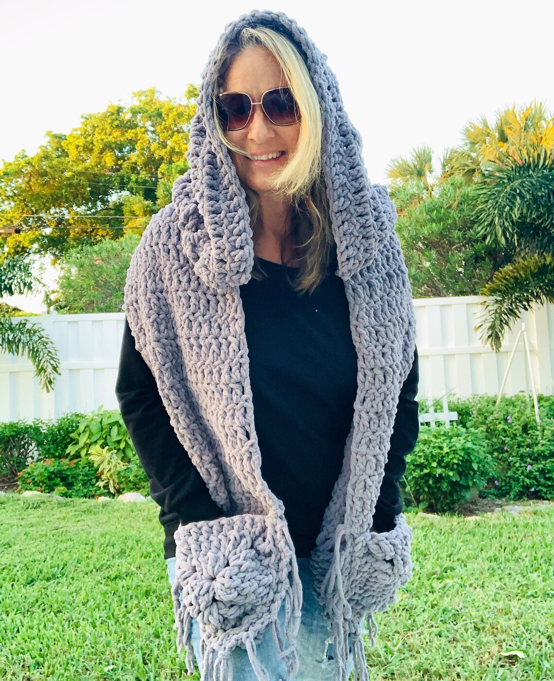 Hooded Pocket Shawl, Pocket Shawl, Scarf With Pockets, Wrap With Pockets, Scarf, Shawl, Womens