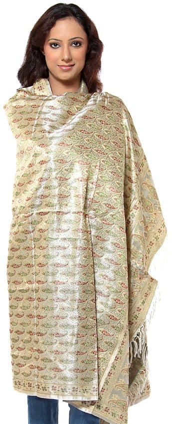 Beige Resham Tehra Banarasi Shawl | Exotic India Art banarasi shawls