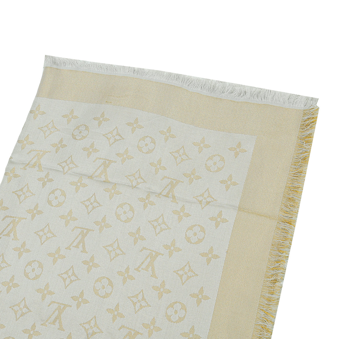 Louis Vuitton Greige Monogram Shine Shawl â THE CLOSET louis vuitton shine shawl greige
