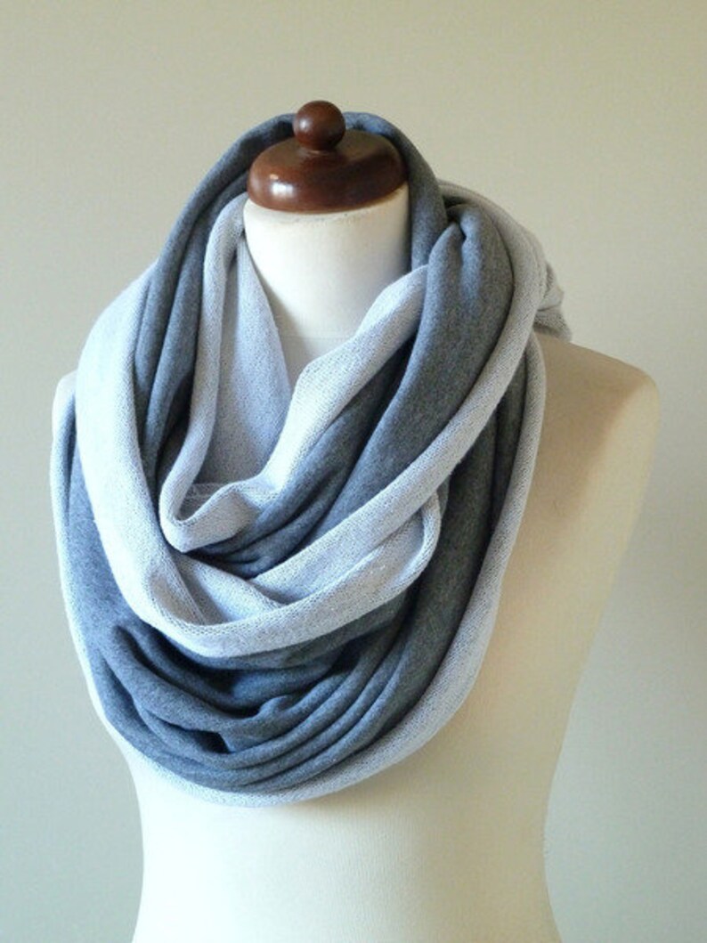 Shawl, Knitted Shawl, Cotton Shawl, Infinity, Shawl Made of Cotton, Grey - Grey Scarf, Warm