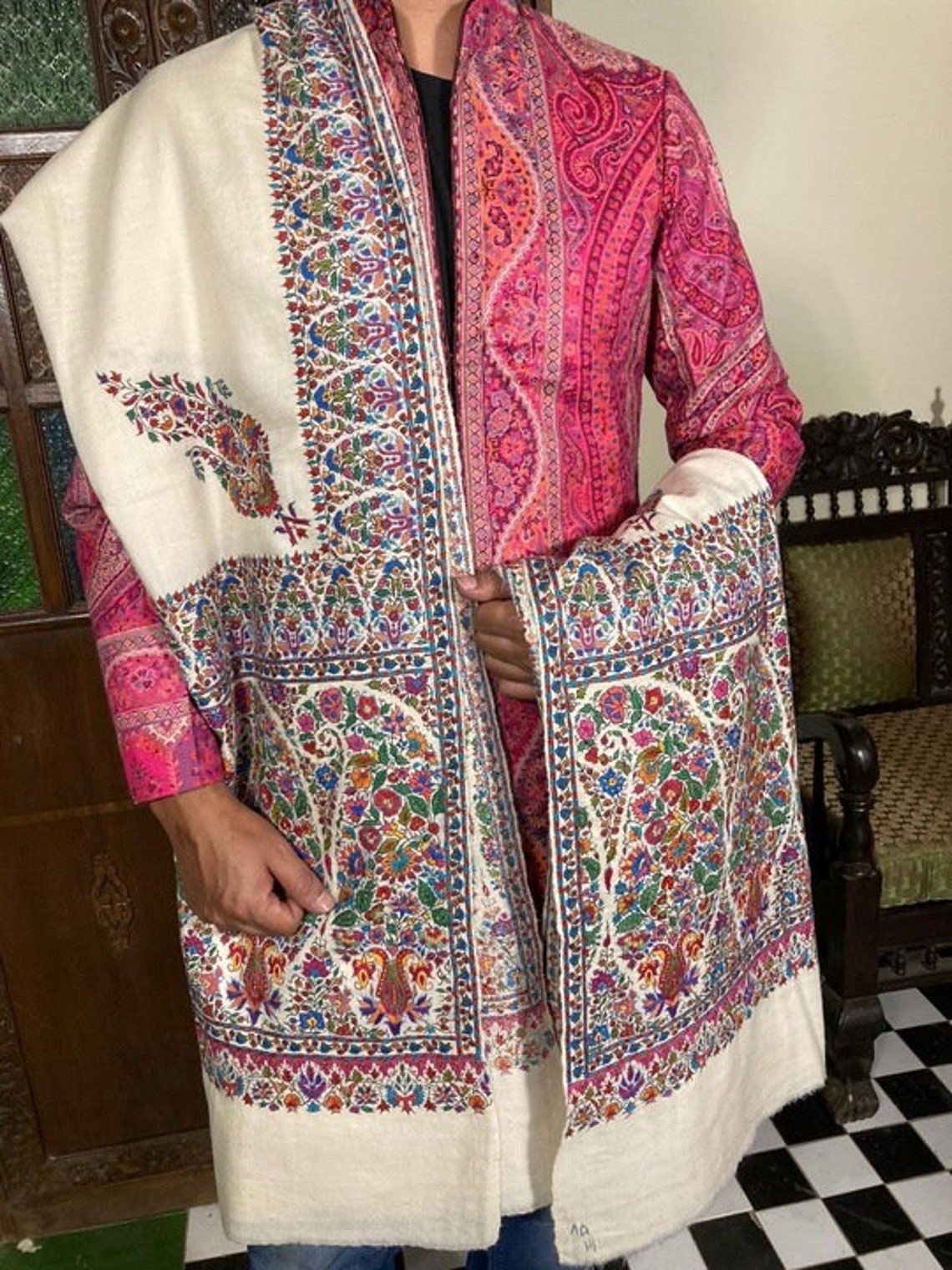 Grand Mens Pashmina Kashmiri Shawl in White with Sozni | Etsy kashmiri shawl mens