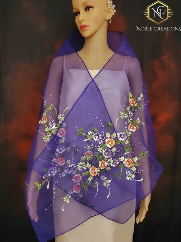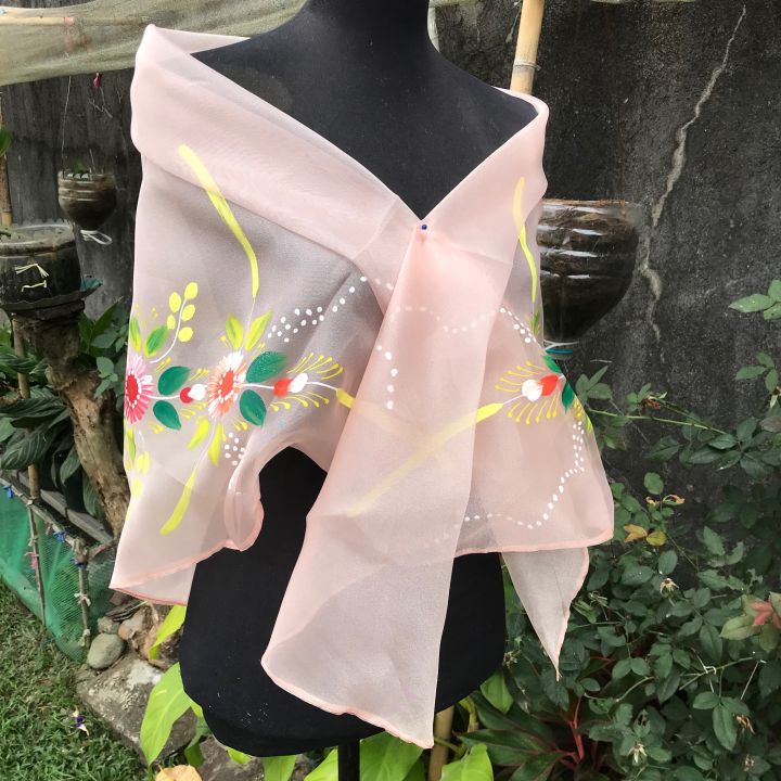FILIPINIANA SHAWL Hand Painted Philippine ALAMPAY, Balabal, Panuelo Maria Clara Mestiza Design shawl for filipiniana