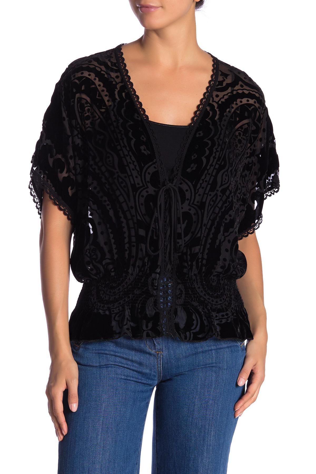 Johnny Was Jade Smocked Burnout Velvet Top in Black - Lyst johnny was bouquet burnout velvet shawl