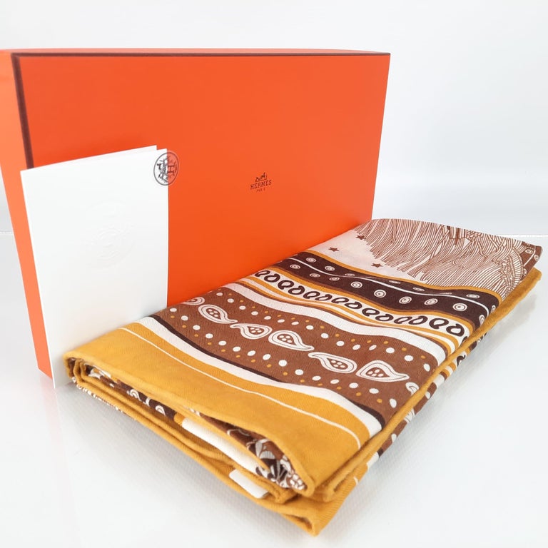 Hermes Curry / Camel / Blanc Shawl 140 Selle de Dignitaire Bandana For Sale at 1stDibs selle de dignitaire bandana shawl 140
