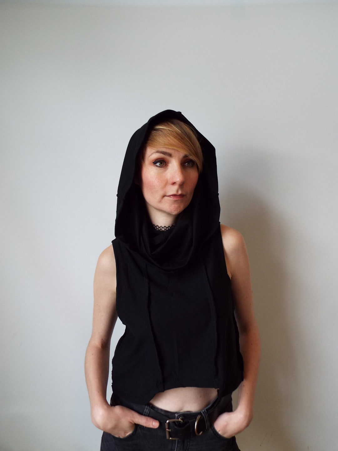 D0g_5t4r F_rook Crop Black Cowl Neck / Shawl Hood 3/4 Sleeves Cyberpunk / Futuristic/ Sci-fi cowl neck shawl