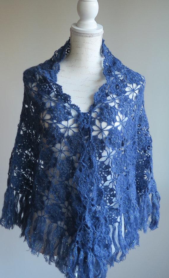 Wedding Shawl, Bridal Shawl, Bridal Wedding Stole, Royal Blue Shawl, Hand Crocheted Shawl, Blue bridal saree with shawl