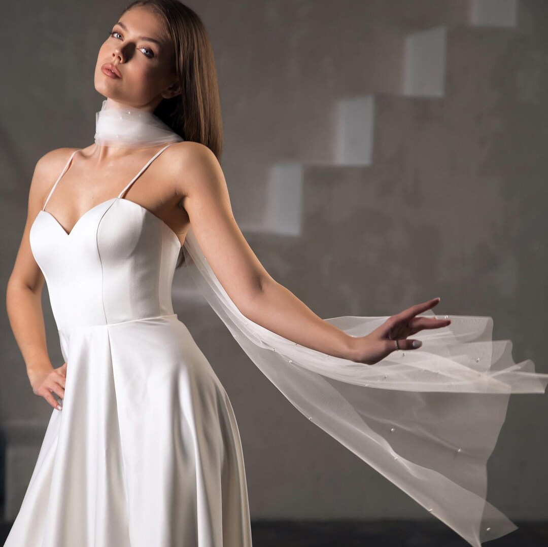 Wedding Shawl, Tulle Bridal Scarf, Pearlbridal Wrap, off the Shoulder Wedding Bolero, White shawl on saree for wedding