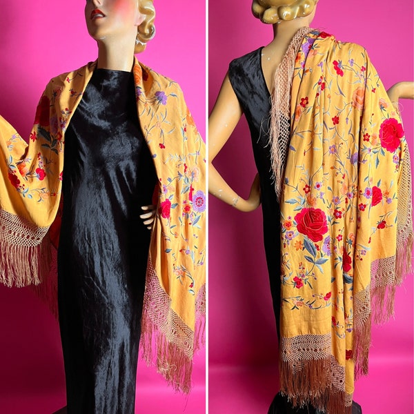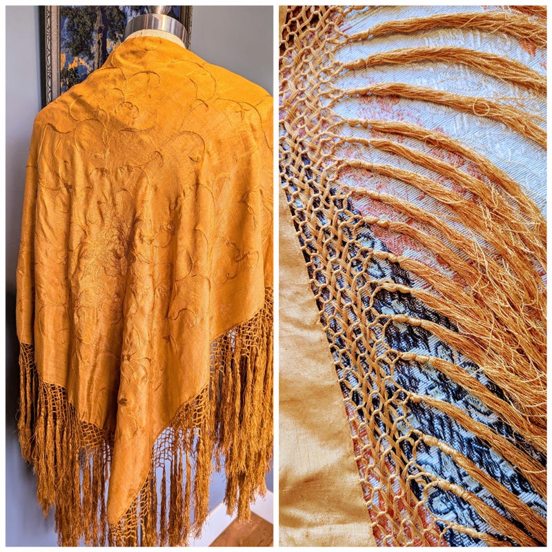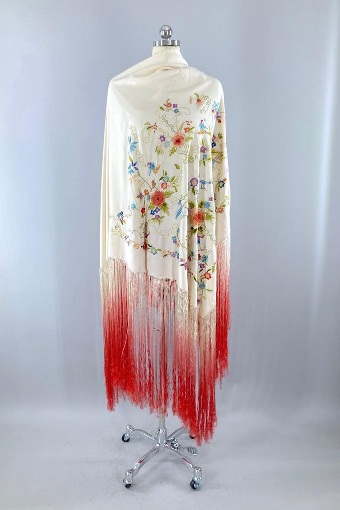 Vintage Embroidered Silk Fringed Piano Shawl â ThisBlueBird fringed piano shawl