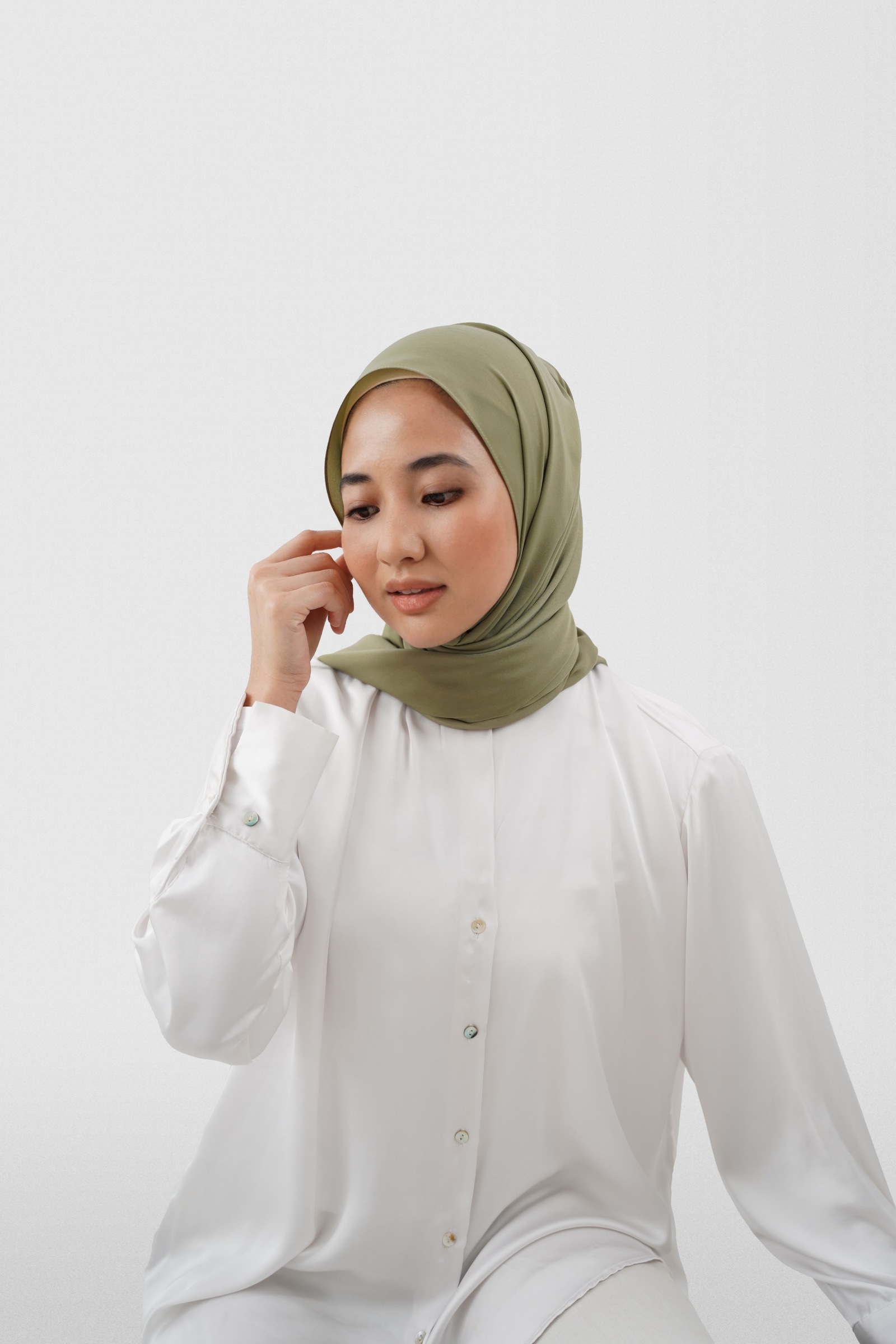 Matte Satin Shawl in Olive â Basically Studio shawl satin putih