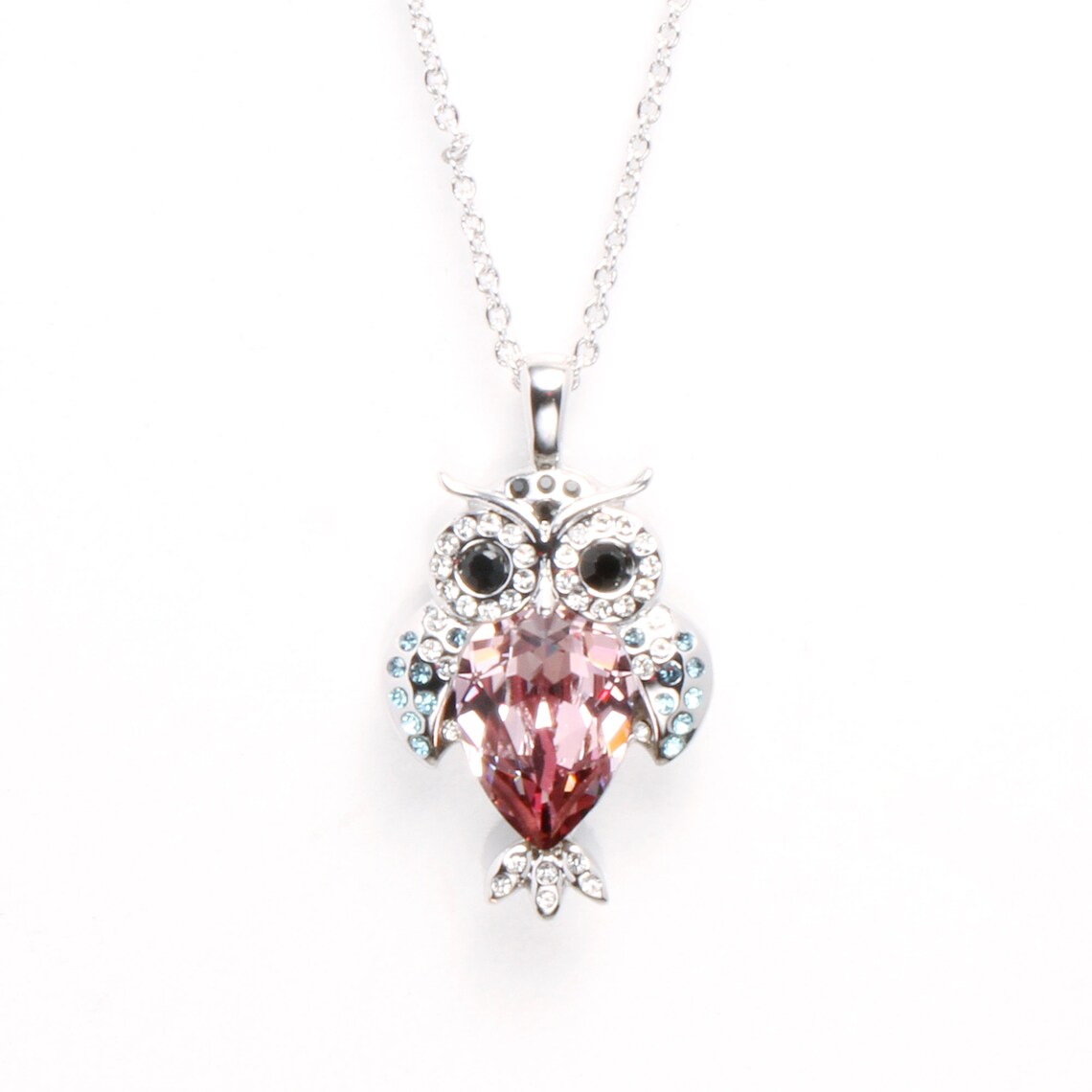 Owl Crystals From Swarovski & Silver Necklace in Pink, Blue, Clear, Ruby Pink - Etsy shawl with swarovski crystals