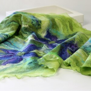 Nuno Floral Felt Shawl, Bright Shawl, Gift for Her, Bright Light Green Silk and Wool Shawl - Etsy nuno felt shawl