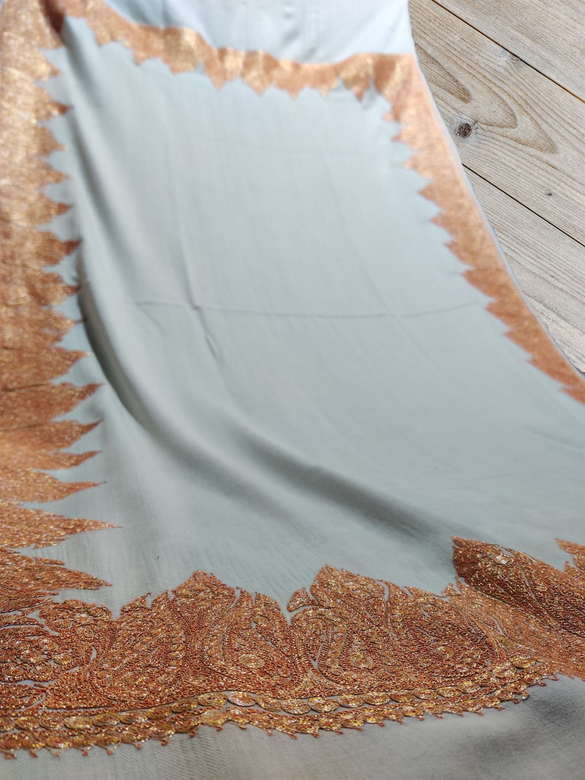 Light Blue Tilla Border Embroidery Pashmina Shawl â purekashmir.com shawl tilla design