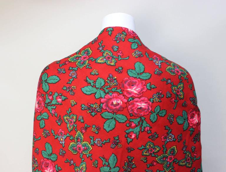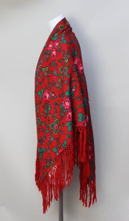 Vintage Red Russian Wool Challis Shawl with Fringe For Sale at 1stDibs wool challis shawl