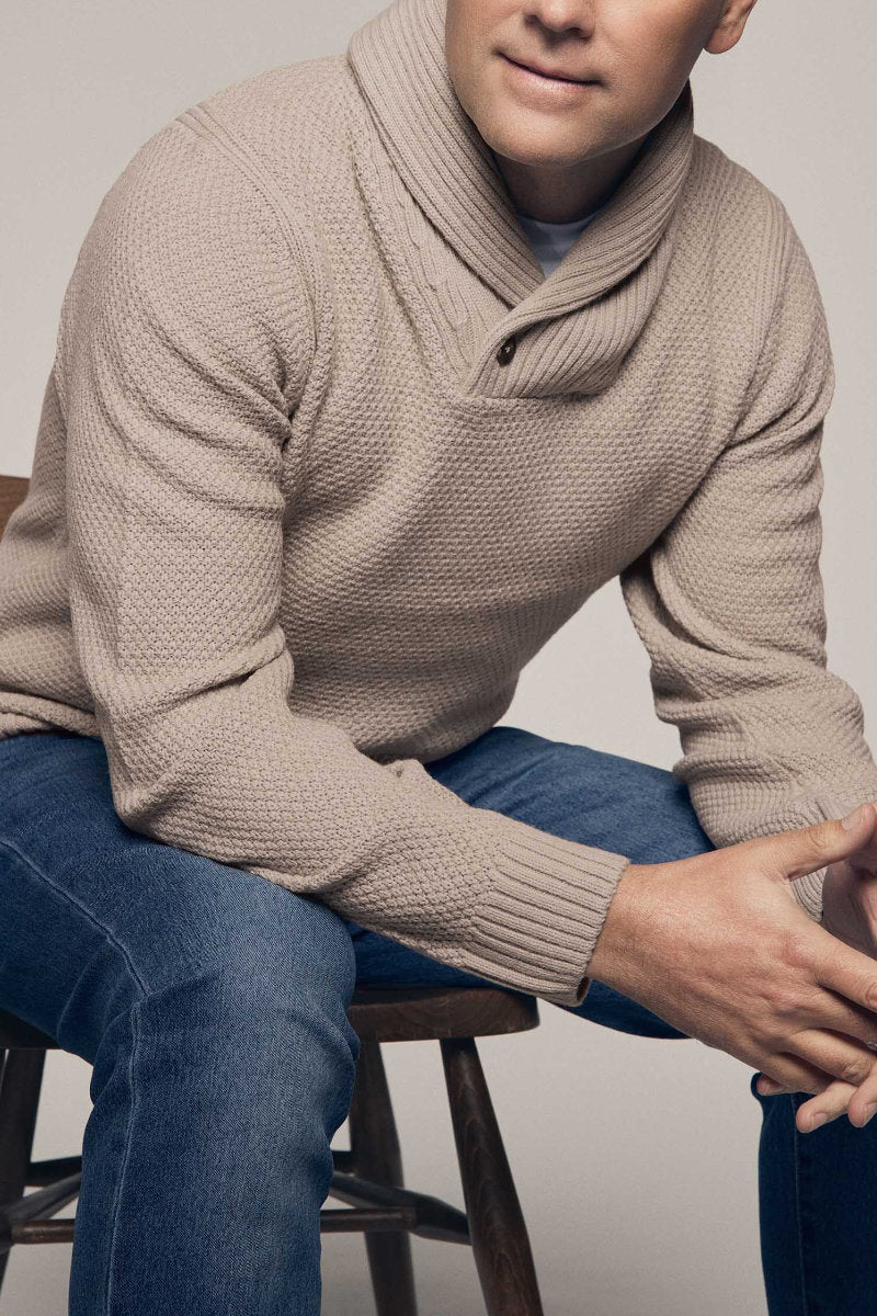 Mens Natural Plain Knitted Shawl Neck Jumper â Shush mens shawl neck jumper