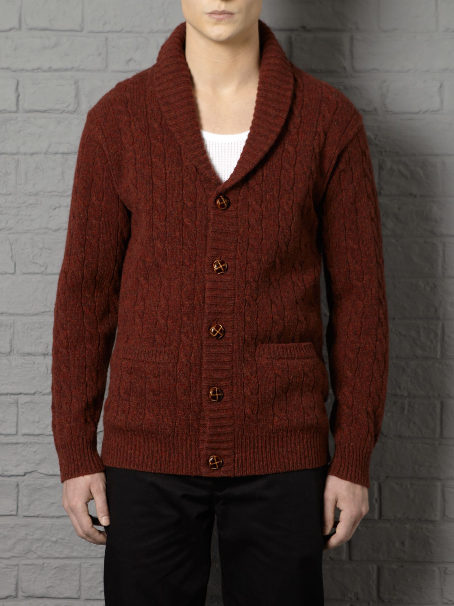 Farrell Shawl Neck Chunky Knit Cardigan in Red for Men | Lyst mens chunky knit shawl neck cardigan