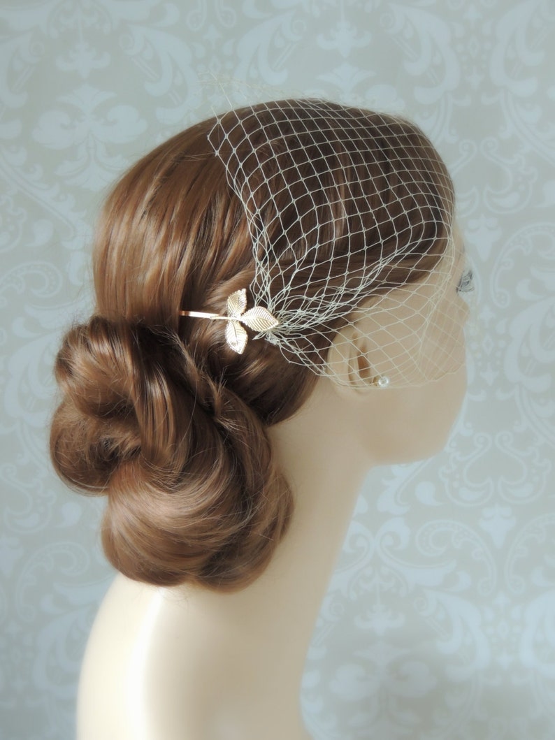 Bridal Birdcage Veil,bridal Blusher Veil, Wedding Head Piece and Gold Leaf Bobby Pins,ivory bridal blusher veils headpieces