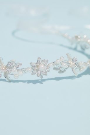 White Pearl and Rhinestone Forehead Drop Headpiece