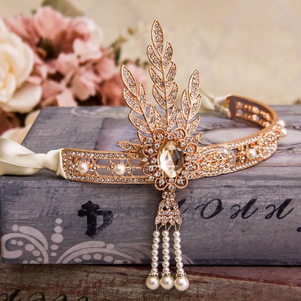 1920s jeweled headpiece Gold White Black Red Blue Beige Grey Price Rose Orange Purple Green Yellow Cyan Bordeaux pink Indigo Brown Silver