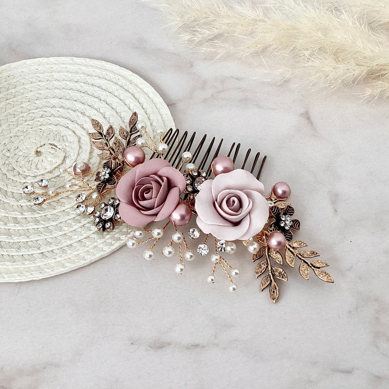 Dusty Rose Pink Wedding Headpiece. Dusty Rose Hair Flowers. | Etsy dusty pink headpiece