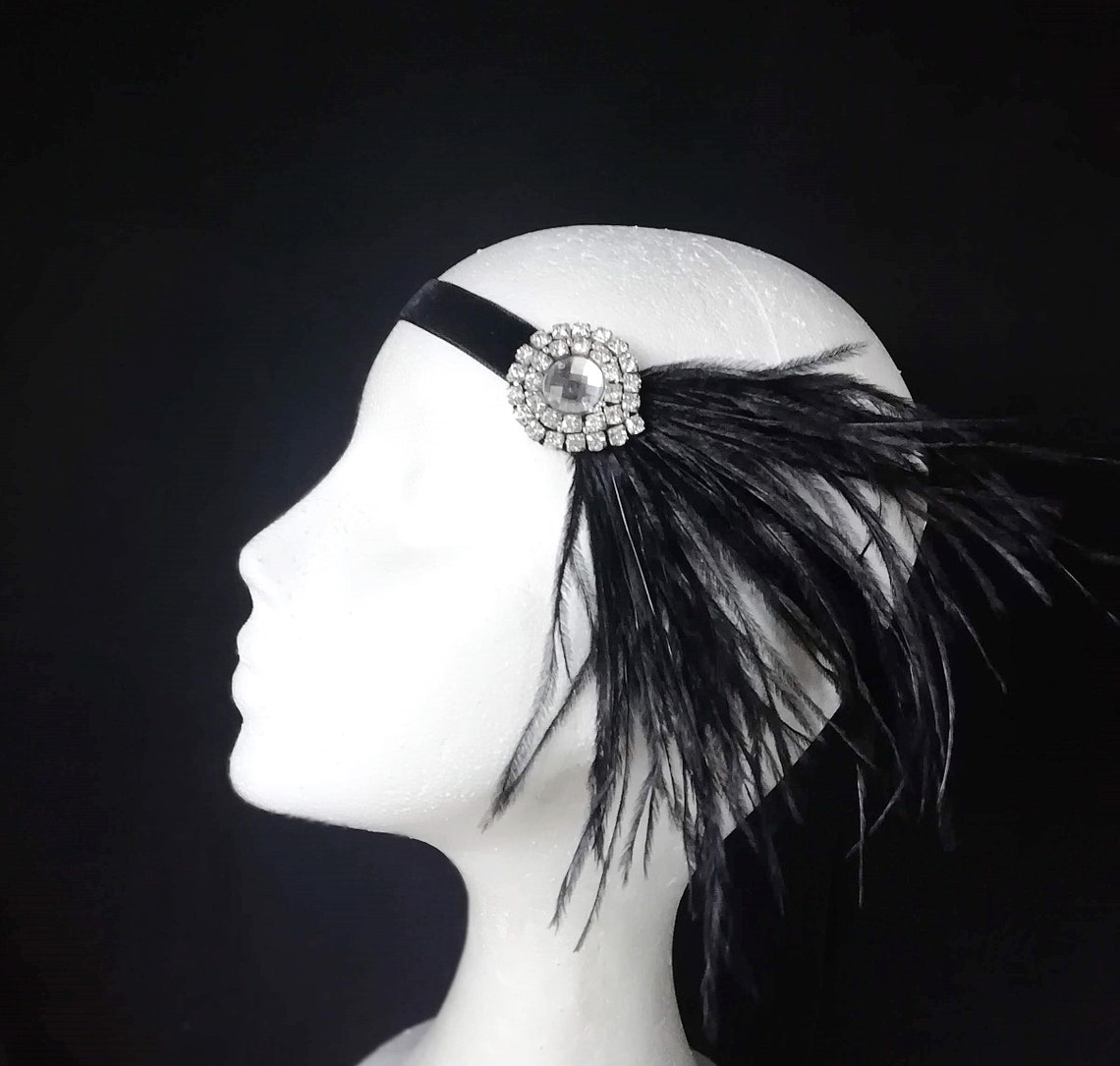 Black Feather Great Gatsby Headpiece Flapper Accessories | Etsy great gatsby feather headpiece