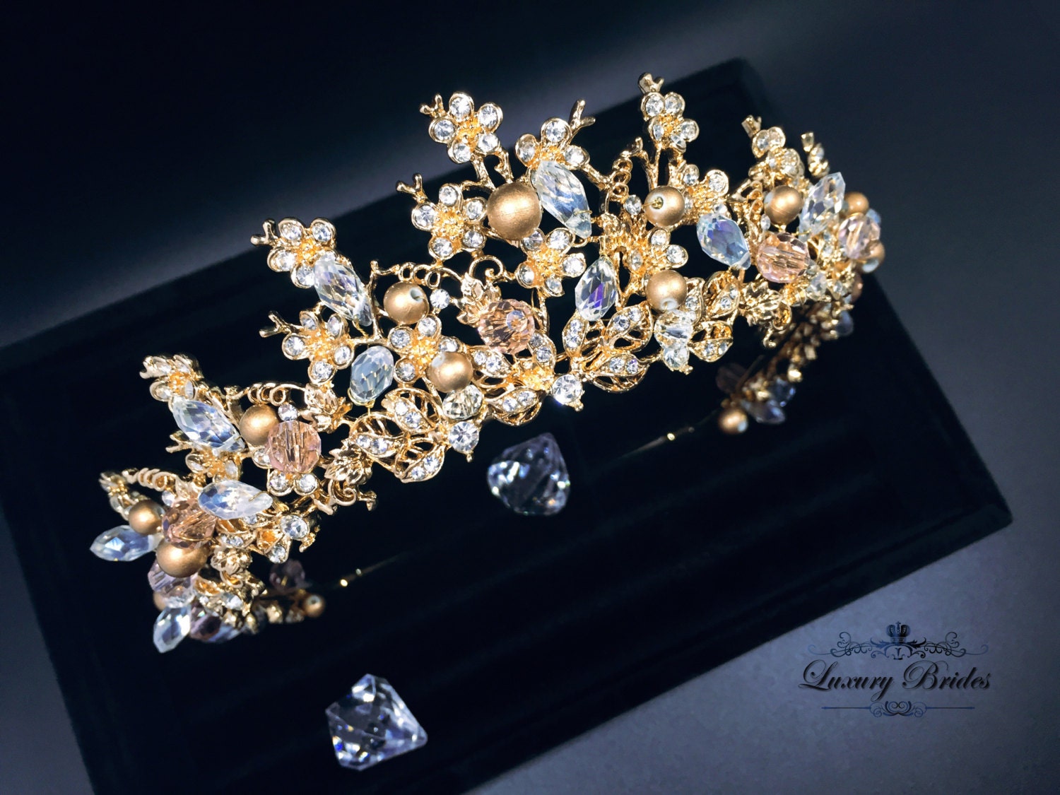 Bridal headpiece. Bridal crown. Gold crown. Bridal tiara. | Etsy