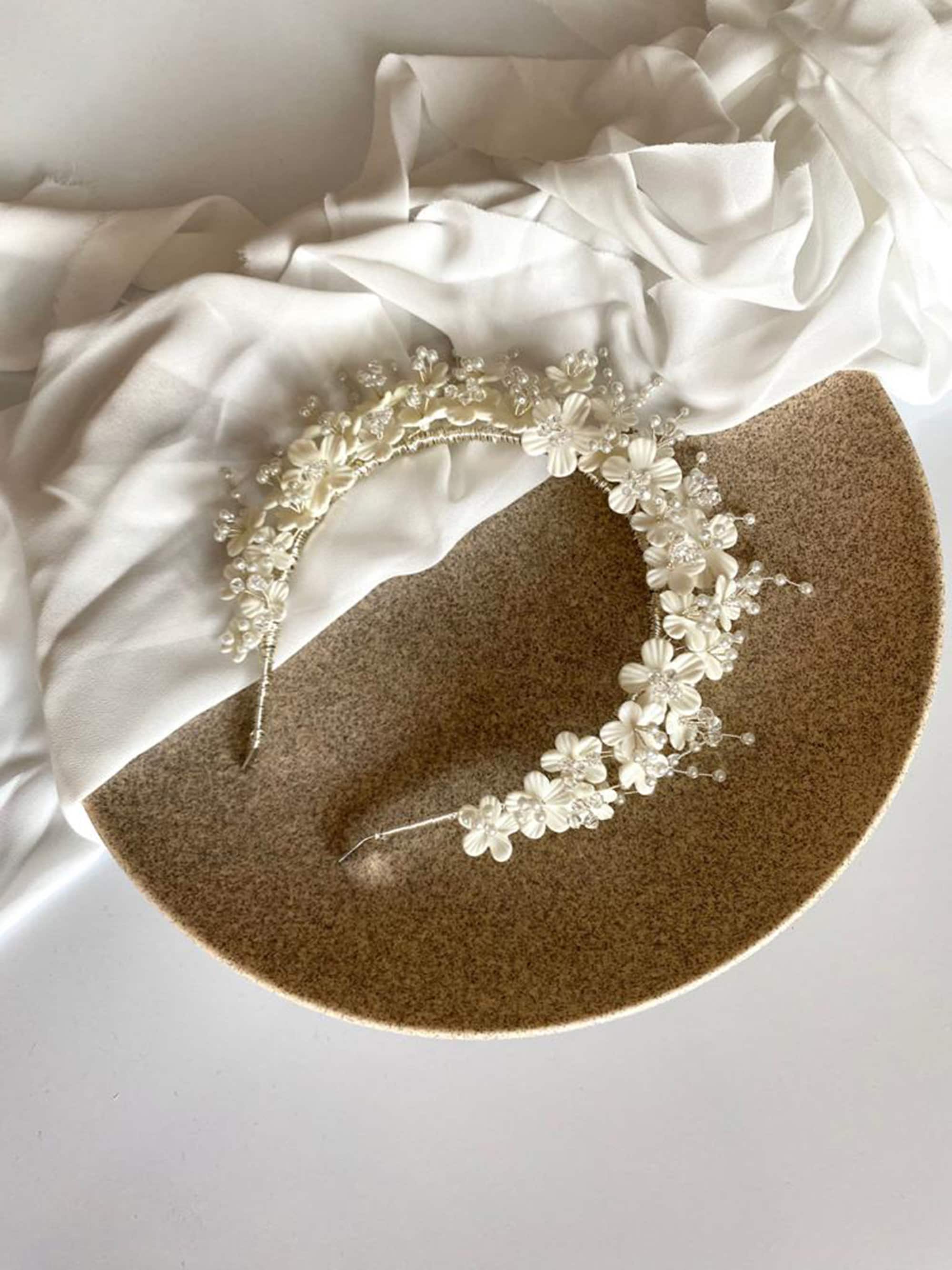 Bride Crown, Bridal Headpiece, Wedding Headpiece, Porcelain Flowers, Couronne Porcelaine, Hair