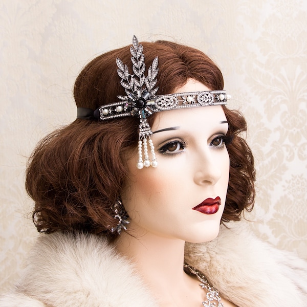 Great Gatsby Headpiece Rhinestone Headpiece Black Feather and | Etsy great gatsby headpiece near me
