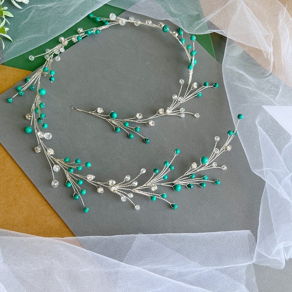 Turquoise headband Wedding headpiece Boho beaded headpiece | Etsy turquoise wedding headpiece