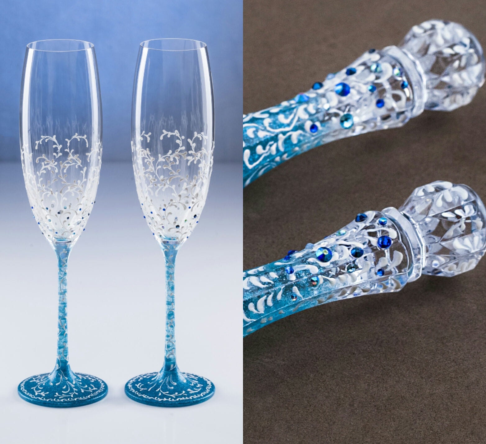Turquoise Wedding Set Turquoise Wedding Glasses Cake Server - Etsy turquoise wedding headpiece