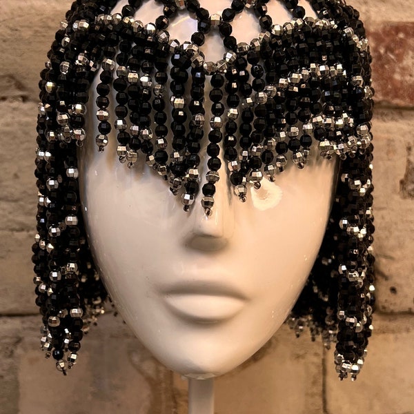 Gatsby Headpiece Black Gold 1920s Gatsby Dress Flapper Headpiece roaring 20s Juliet Cap Wedding