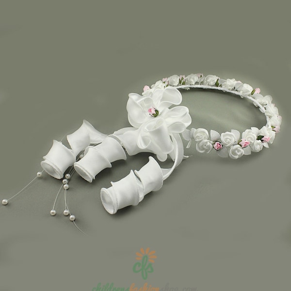 First Communion Flower Crown Headpiece with Streamers - FirstCommunions.com headpiece for first communion