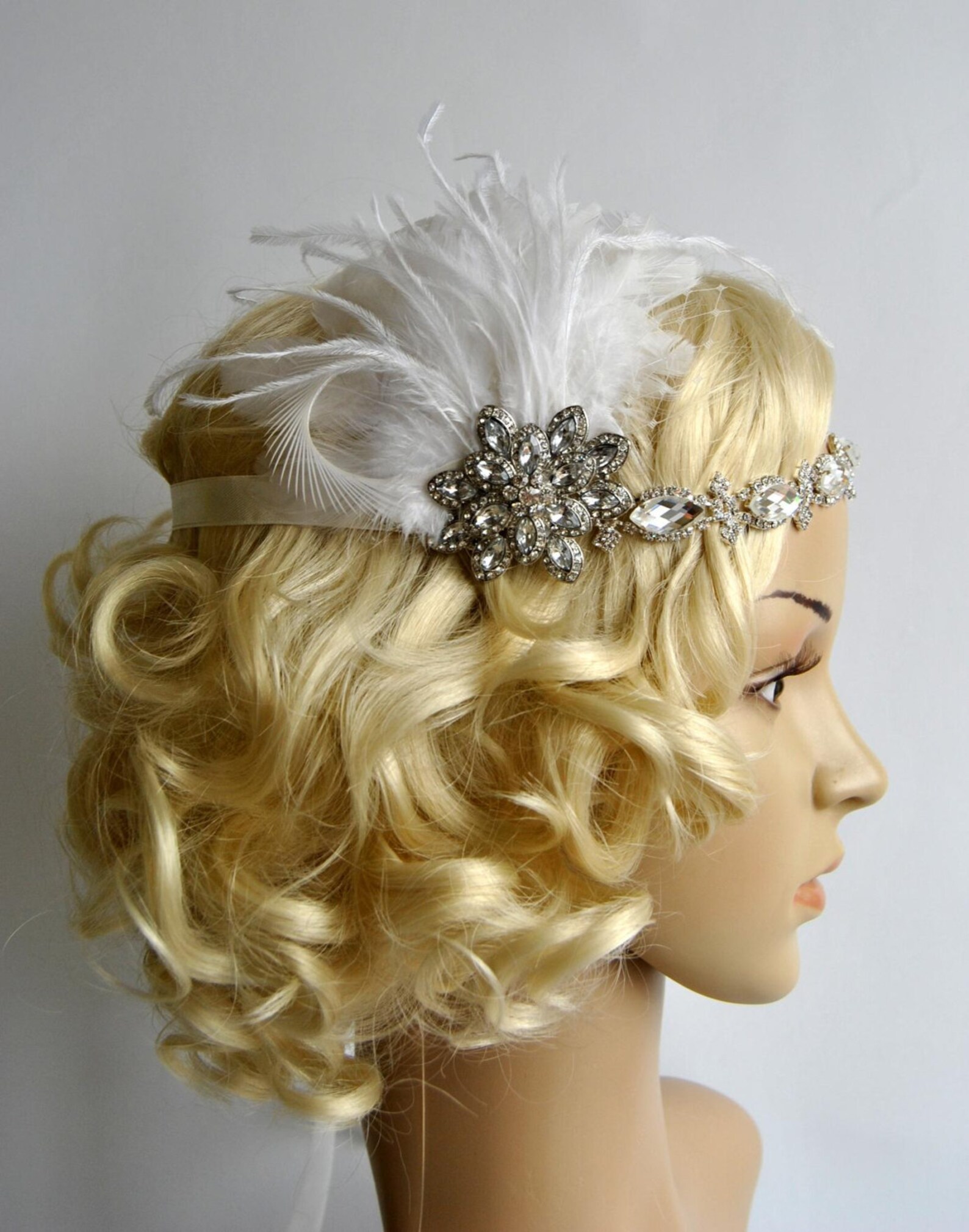 1920s Flapper Headband Roaring 20s Headpiece Gatsby Ostrich Feather Headpiece With Crystal for 1920s crystal headpiece