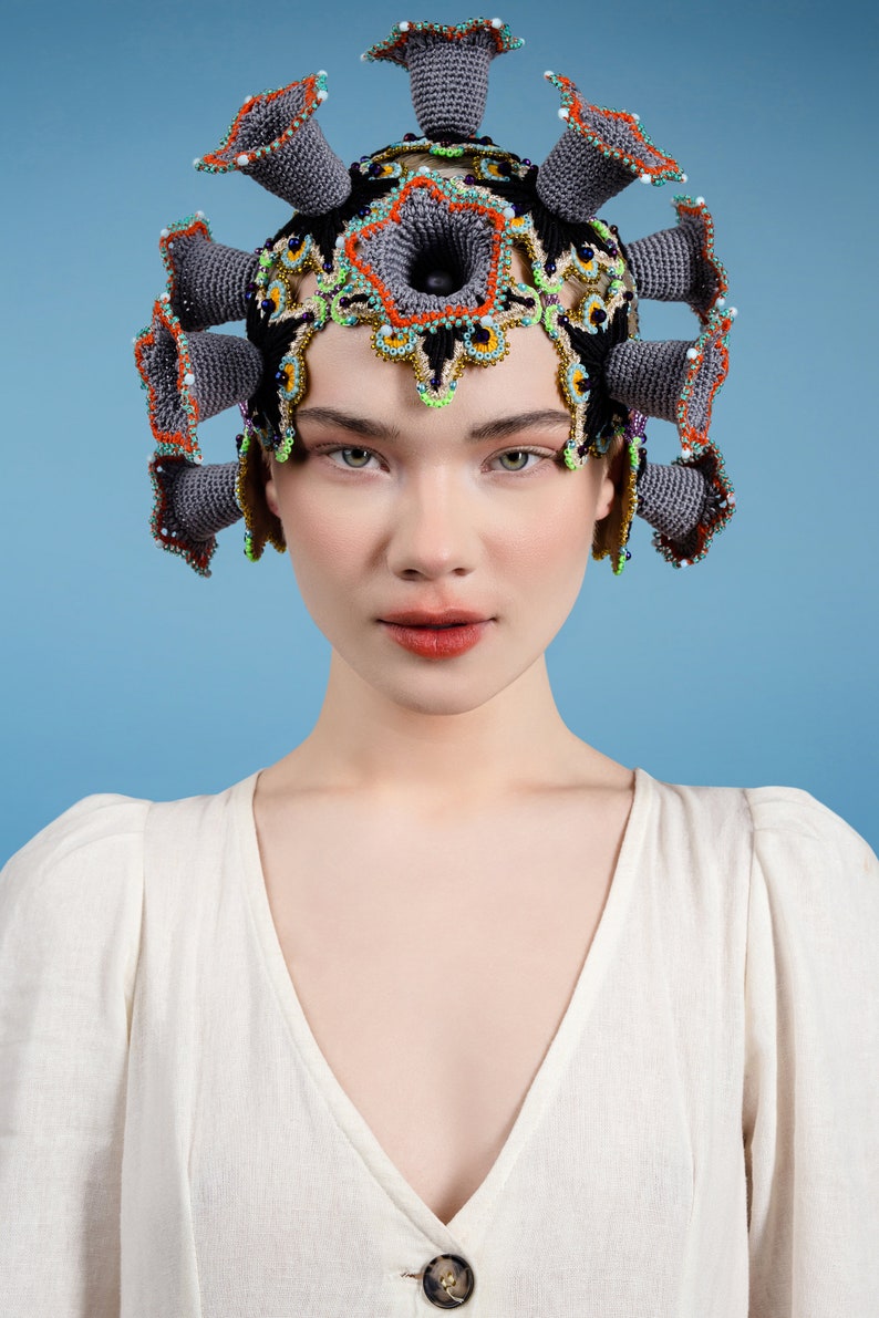 Avant Garde Crochet Headpiece With Flowers - Etsy avant garde headpiece