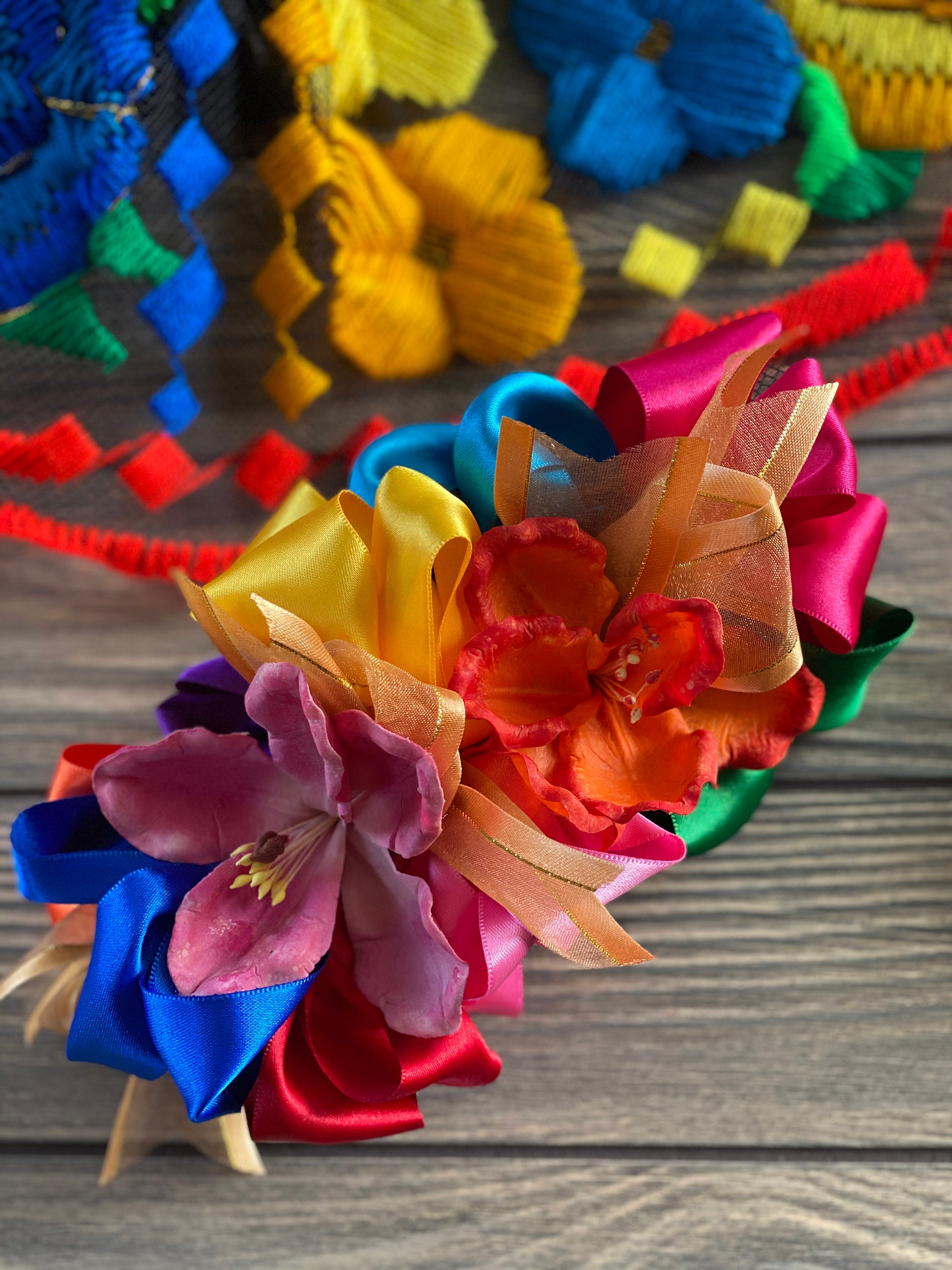 Traditional Mexican Flower Headpiece. Girls Floral Bow. | Etsy cuban flower headpiece