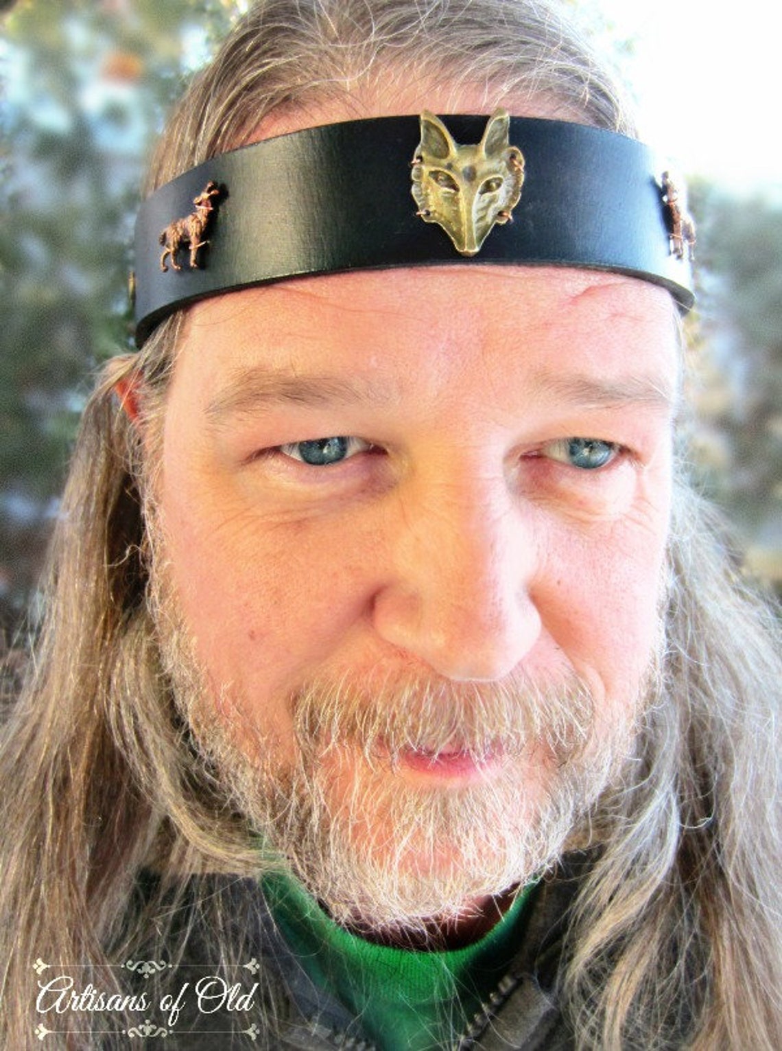Wolf Headpiece for Men Black Leather Headband | Etsy