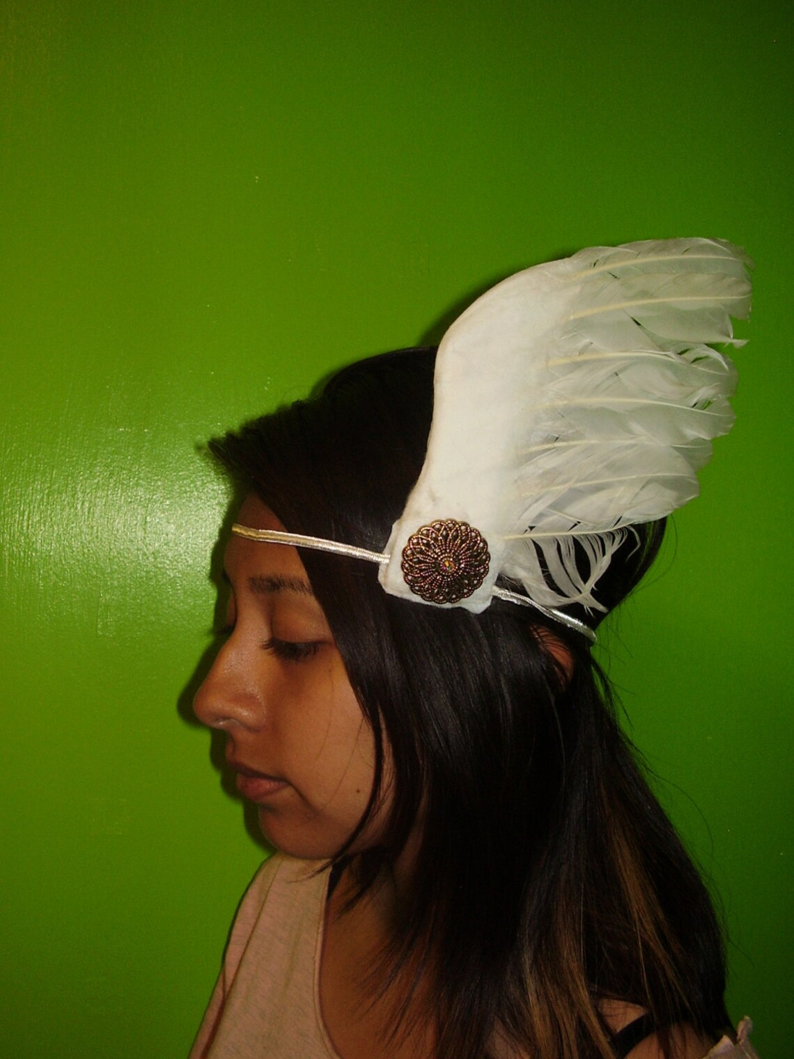 HERMES WINGS Headpiece White Feather Wings With Vintage Gold