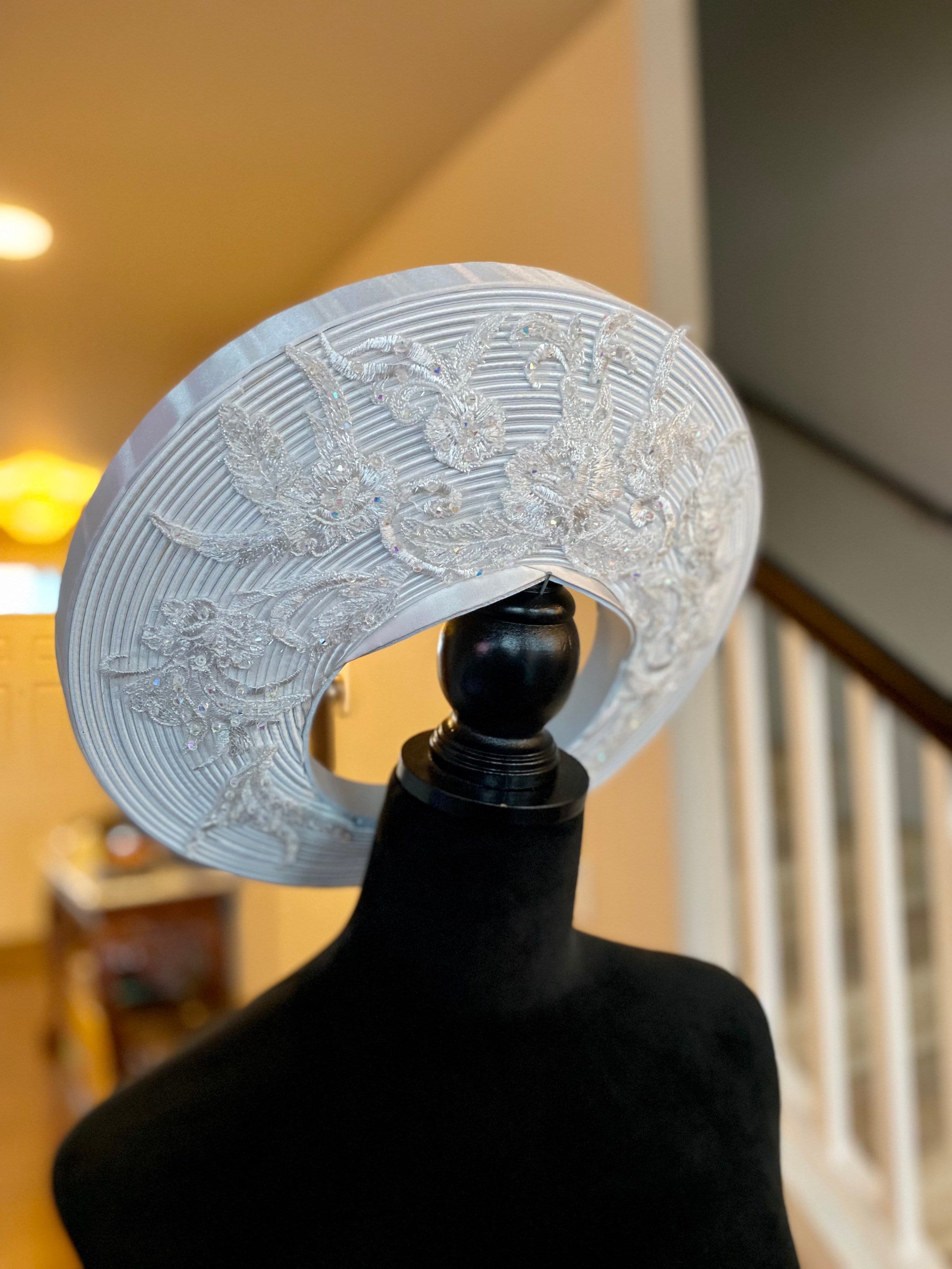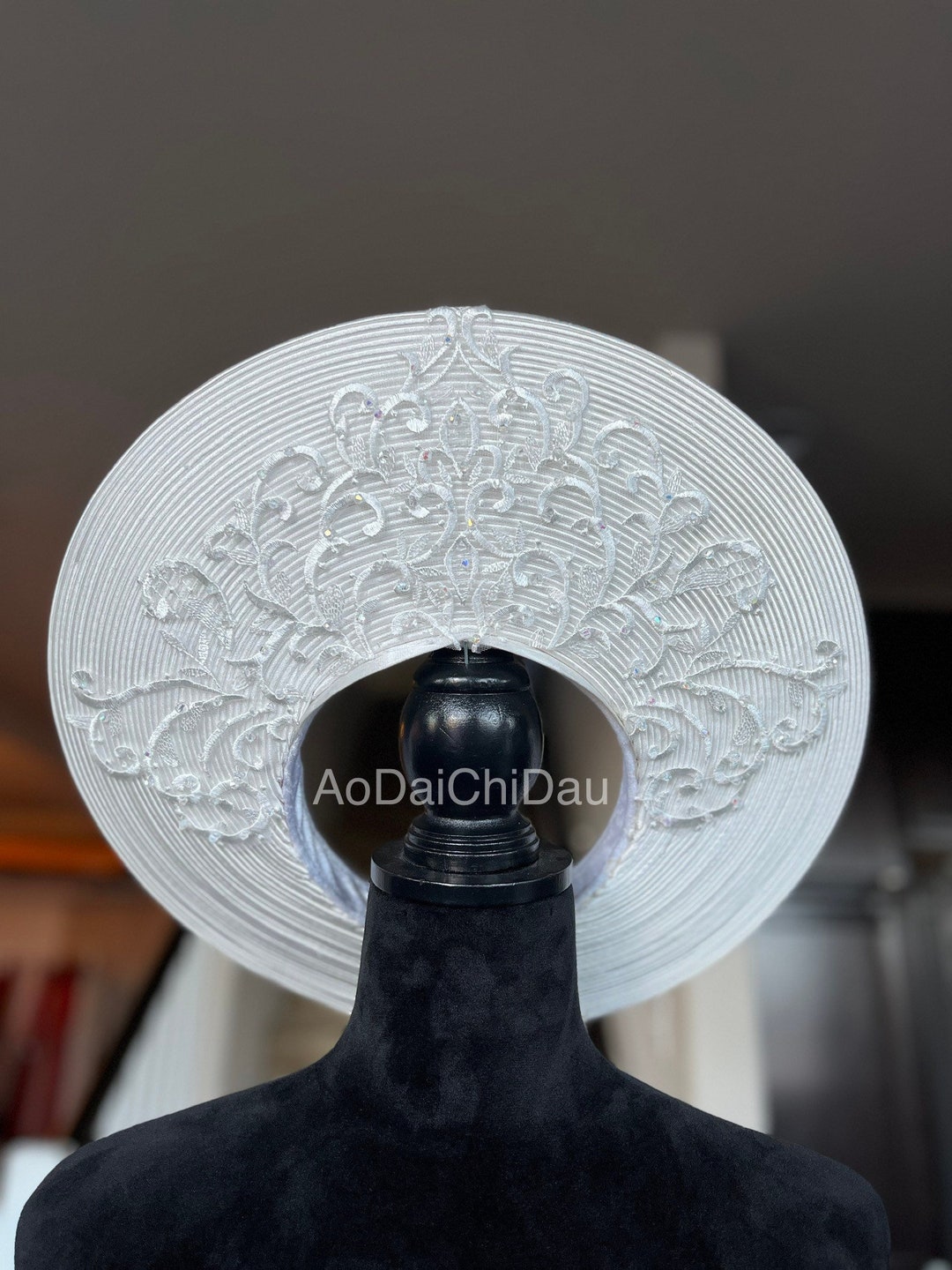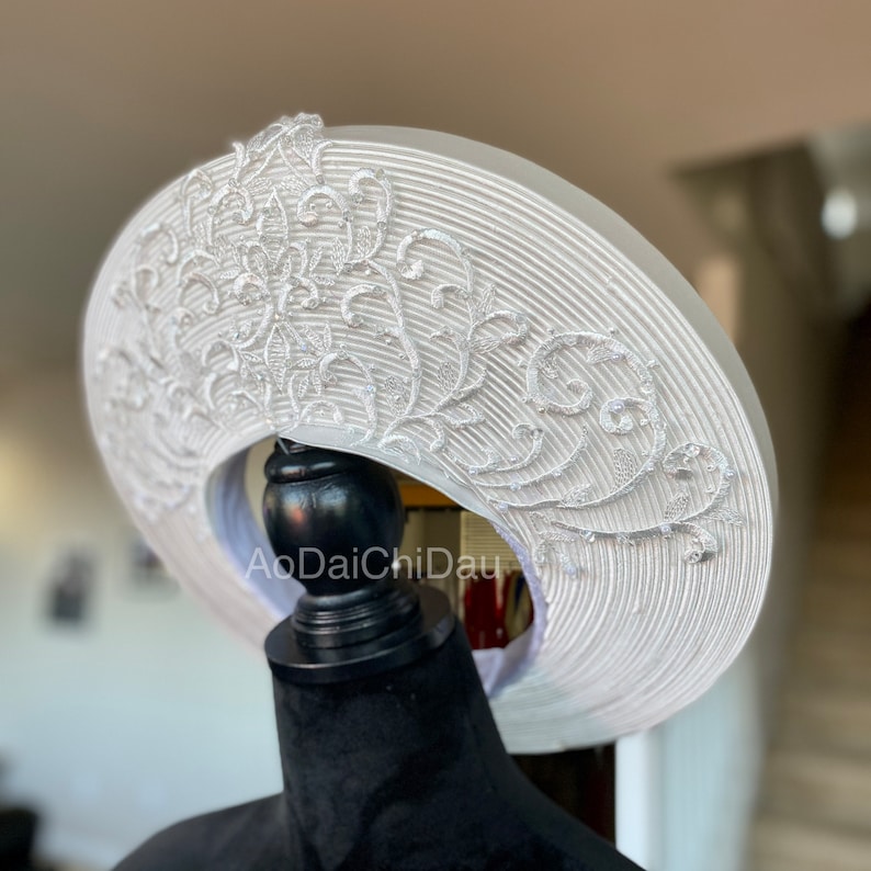 Headpiece for Vietnamese Ao Dai in White, Lace Details With Beadings, Custom Size and Pre-made vietnamese headpiece