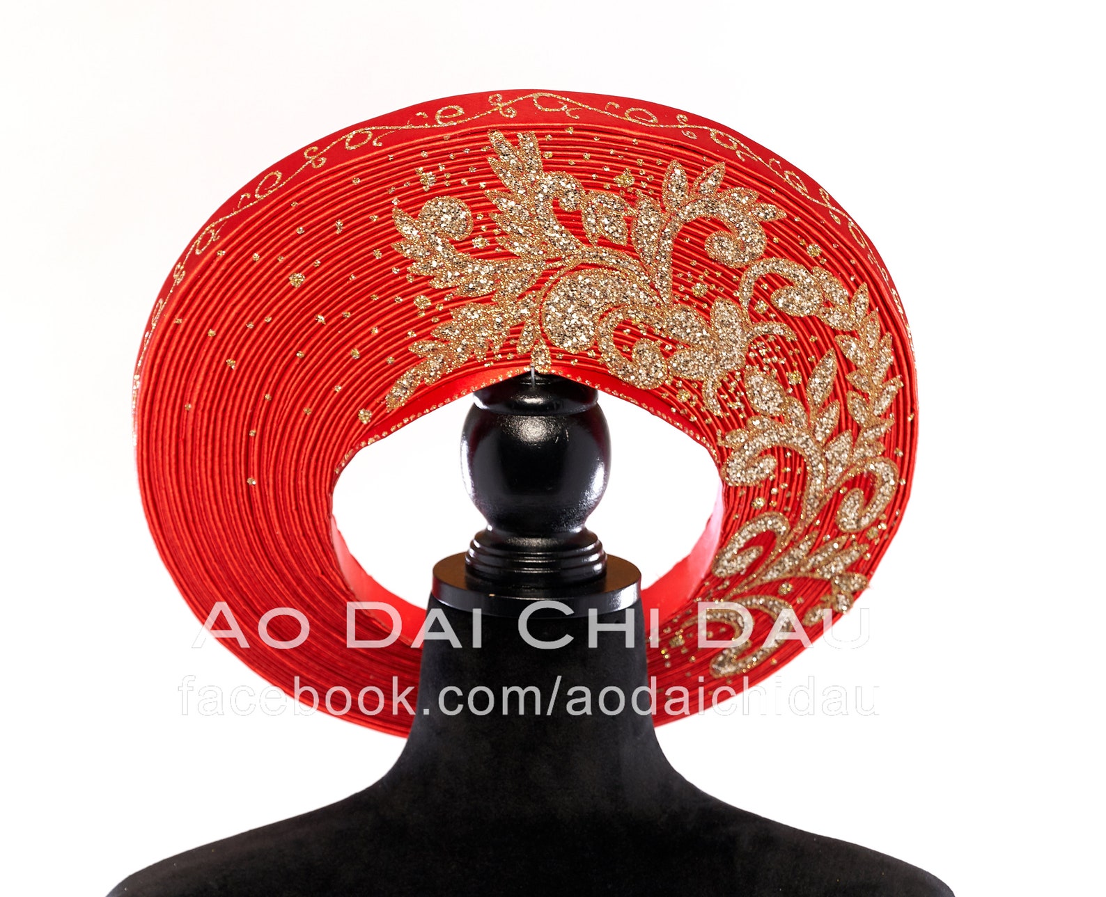 Headpiece for Vietnamese Ao Dai in Red Floral Gold Glitter - Etsy vietnamese headpiece