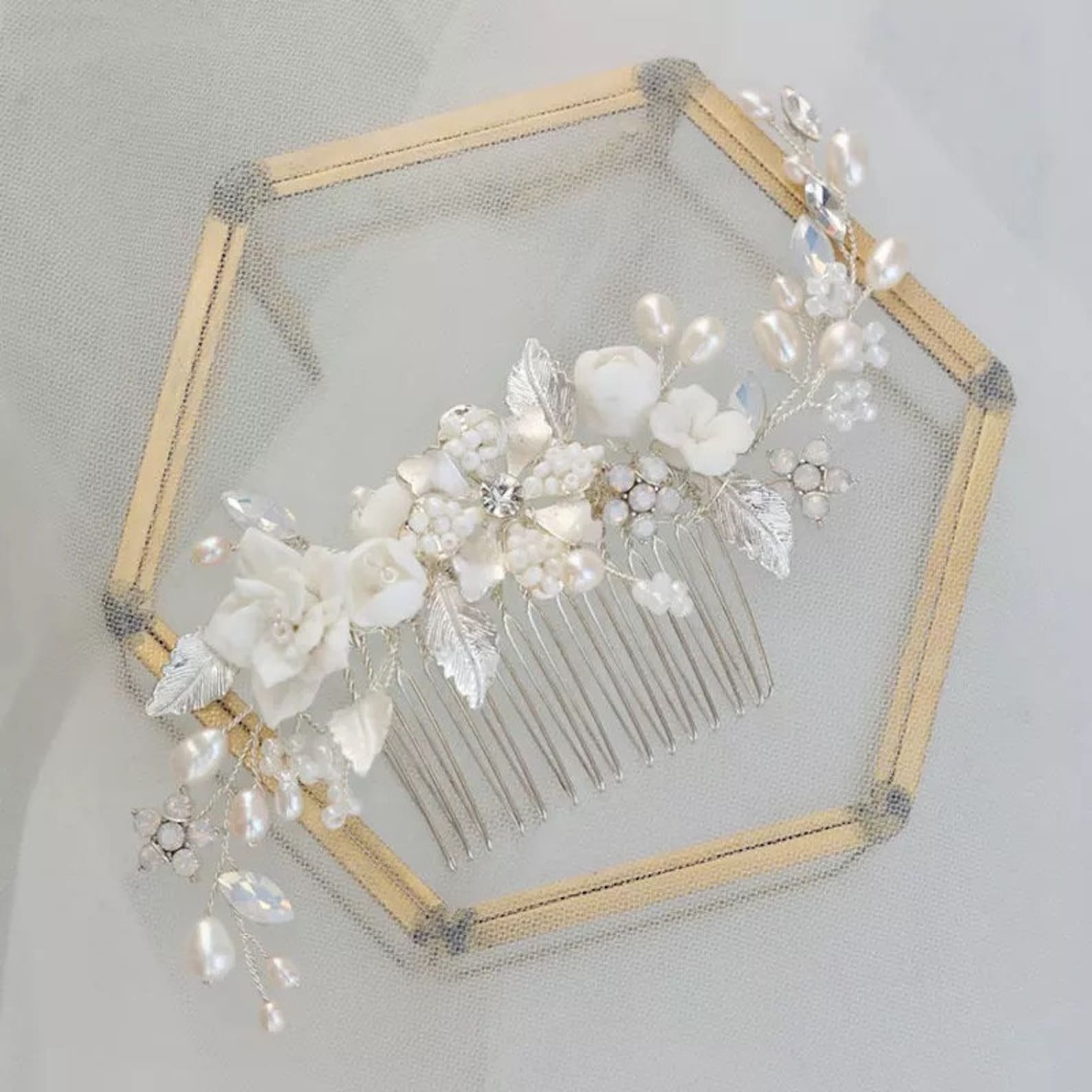 Pearl Bridal Headpiece Floral Bridal Headpiece Leaf Bridal - Etsy bridal pearl headpiece