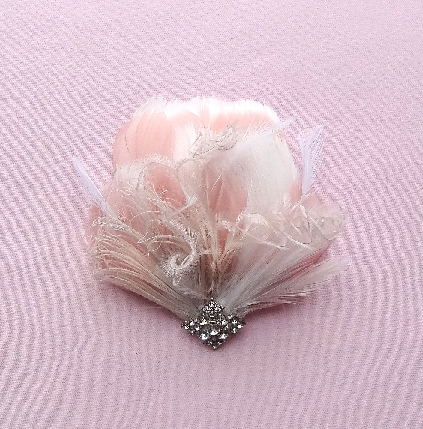 Bridal Feather Headpiece, Blush Wedding Hair Accessories, Wedding Crystal Feather Headpiece bridal feather headpiece