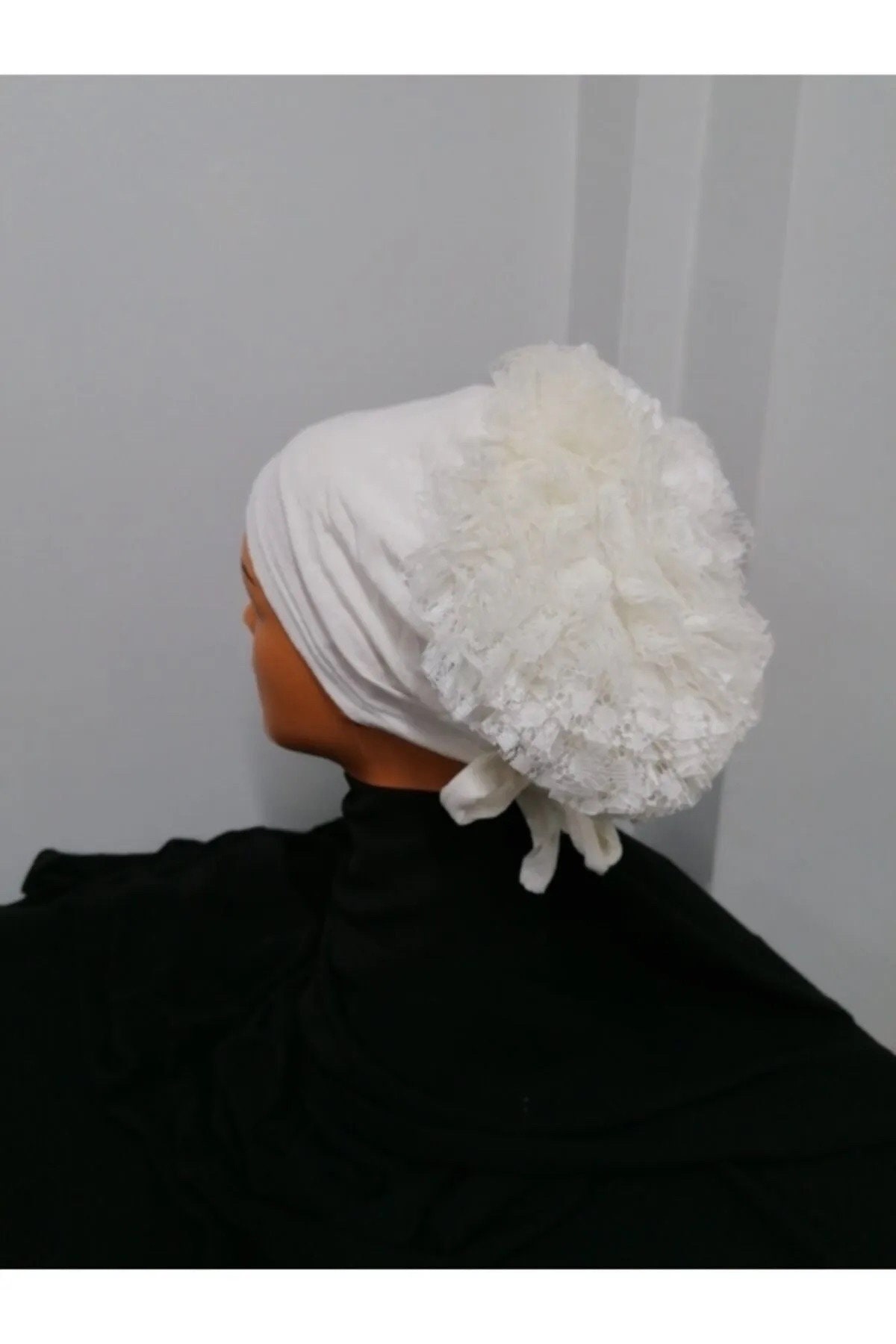 Ready To Wear Bridal Hijab, Ready Turban, The Head Of The Bride, Hijab, Tesettur, HGT-06 Ivory
