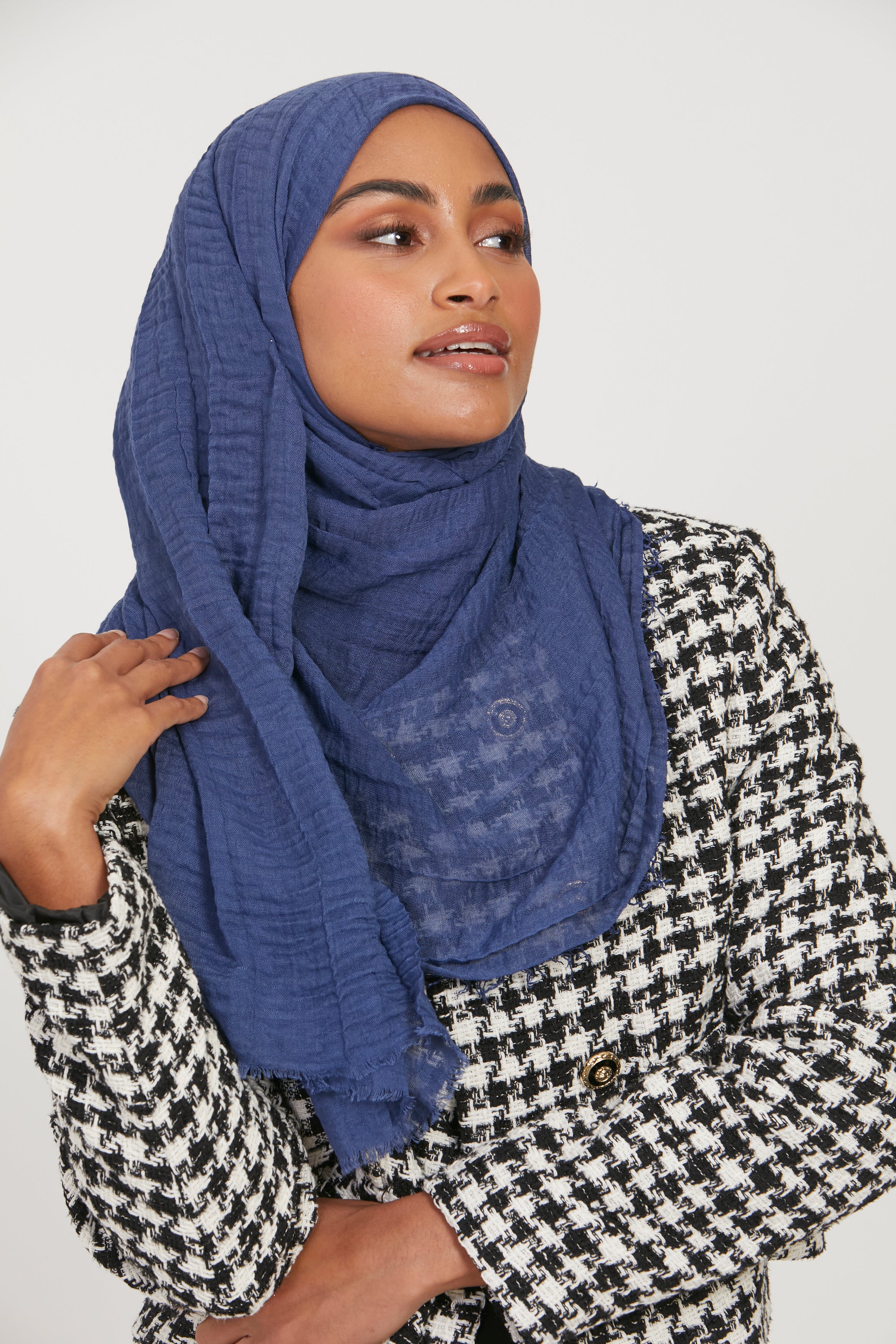 Frayed Crinkle Hijab - Cobalt Blue â AbayaButh
