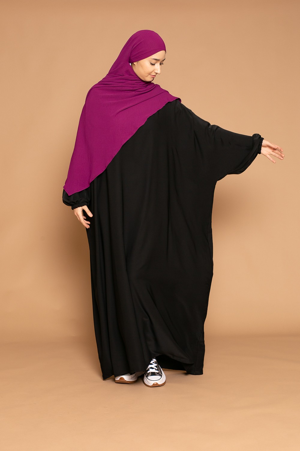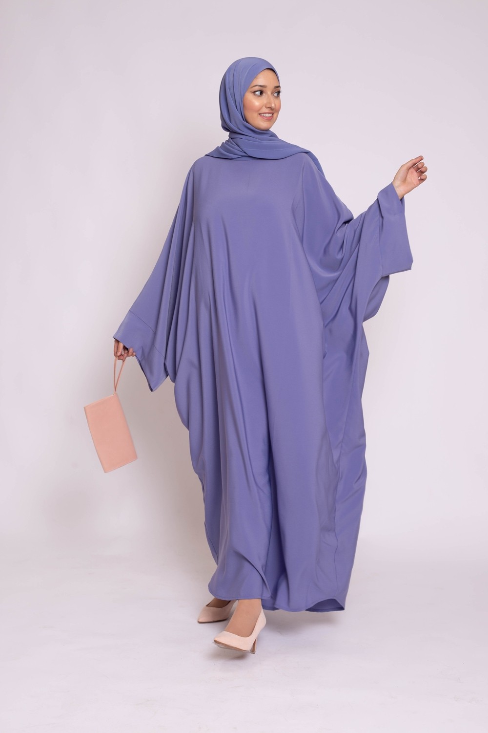 A versatile three piece abaya set including the inner slip dress, the open jacket, and the hijab